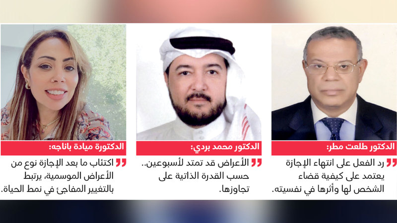 • عيادات الطب النفسي تشهد تزايداً في عدد المراجعين خلال هذه الفترة من كل عام لمرضى يعانون أعراض «اكتئاب ما بعد الإجازة» ودخولهم في حالة من الحزن والأرق وعدم الاستقرار النفسي.