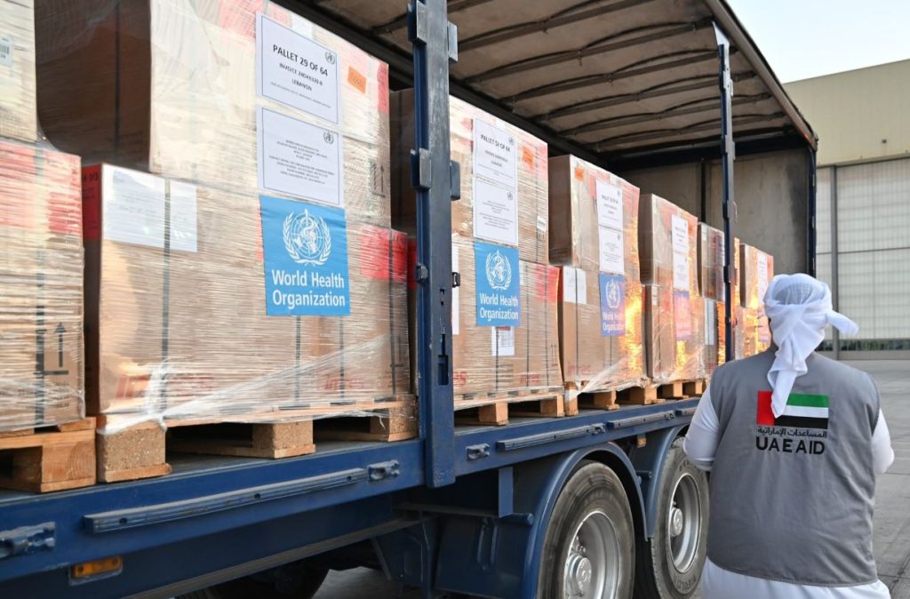 وبناء على أمر صاحب السمو رئيس الدولة “حفظه الله” بتقديم حزمة مساعدات إنسانية إغاثية عاجلة بقيمة 100 مليون دولار أمريكي إلى الأشقاء في لبنان، أرسلت دولة الإمارات وبالتعاون مع منظمة الصحة العالمية اليوم الجمعة طائرة مساعدات تحمل 40 طناً من الإمدادات الطبية العاجلة. وهذه الطائرة التي أقلعت من مطار آل مكتوم في دبي هي الأولى التي تهبط في لبنان حاملة ضمن هذه الحملة الإغاثية.