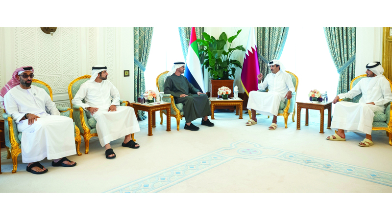 جاء ذلك خلال لقاء صاحب السمو رئيس الدولة أخاه صاحب السمو الشيخ تميم بن حمد آل ثاني، في الديوان الأميري بالدوحة، في زيارة أخوية إلى قطر.