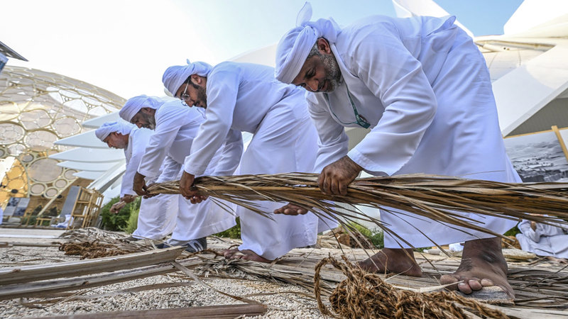 وقال مشرف جناح التراثيات في واحة الاستدامة، سلطان النعيمي، لـ«الإمارات اليوم» إن الأجداد عكفوا على استثمار كل منتجات النخيل قديماً، وإدخالها في صناعات مختلفة، سواء لبناء المنازل أو الحبال للسفن، ما دعم مبادئ وقيم الاستمرارية والاستدامة منذ القدم.