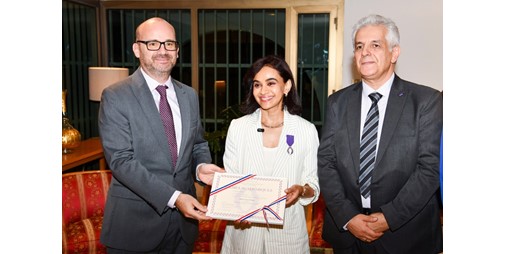 وقال السفير غوفان، خلال حفل رسمي أقيم في مقر إقامته بحضور الأمين العام للمجلس الوطني للثقافة والفنون والآداب د.محمد الجسار، إن هذا الوسام يمنح لشخصيات بارزة من داخل فرنسا وخارجها ممن قدموا إسهامات رائدة في مجالات التعليم والبحث العلمي والثقافة.