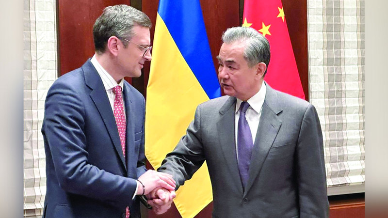 وخلال محادثاتهما أكد وانغ التزام الصين بتعزيز الحل السياسي للحرب الروسية على أوكرانيا، وهو الموقف الذي لقي استجابة إيجابية من كوليبا.