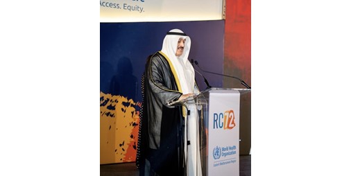 جاء ذلك خلال ترؤسه وفد الكويت في أعمال الدورة الـ 72 للجنة الإقليمية لشرق المتوسط التابعة لمنظمة الصحة العالمية التي انطلقت أعمالها في القاهرة بمشاركة وزراء الصحة وممثلي الدول الأعضاء في الإقليم.