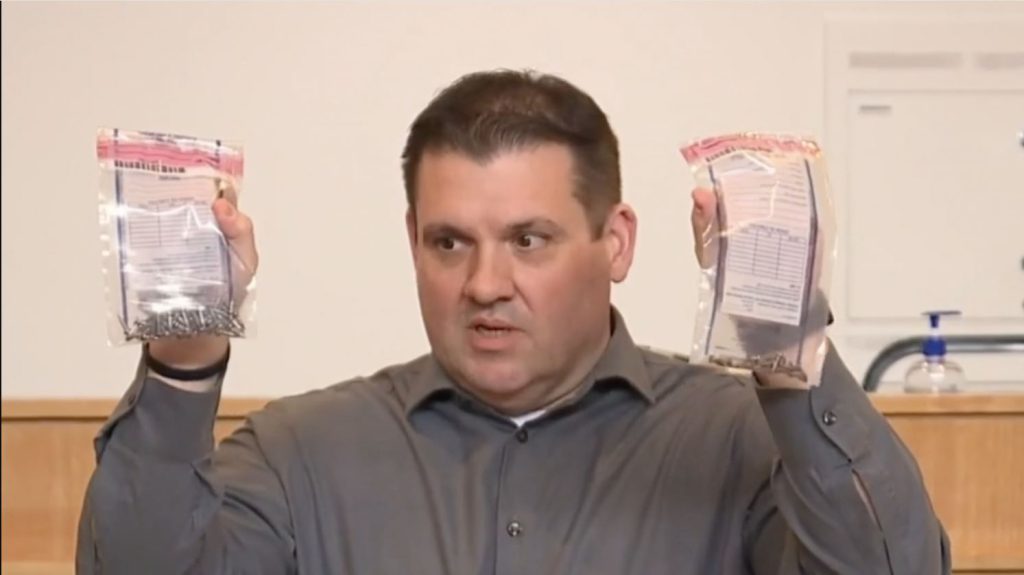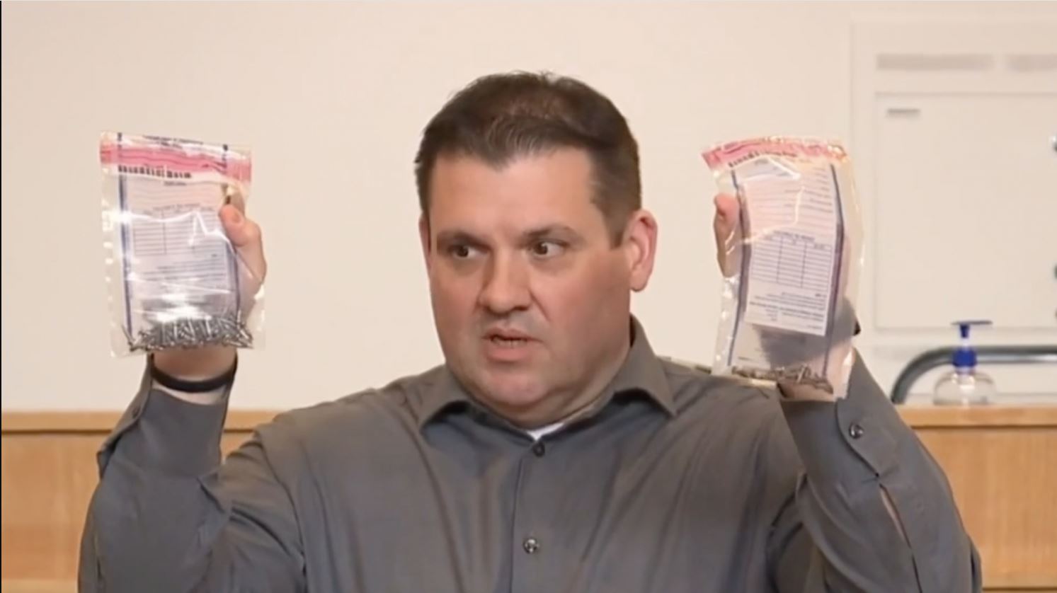 وتم تحديد المسامير التي اشتراها على أنها نفس النوع من المسامير التي تم العثور عليها متناثرة عبر الطرق في سبرينجديل والمجتمعات المجاورة الأخرى، وفقًا لوثائق المحكمة.