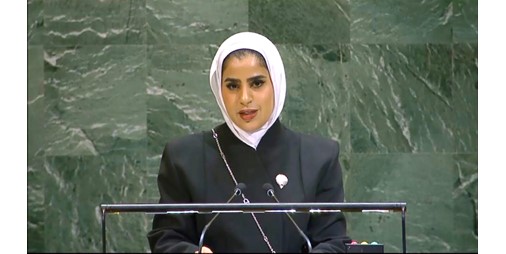 وقالت القطيفي «كما تؤمن بلادي بأن التنمية تشكل ركنا أساسيا لصون الأمن والسلم الدوليين وانطلاقا من هذا الإيمان حرصت على دعم الجهود الدولية في تنفيذ خطة الأمم المتحدة للتنمية المستدامة لعام 2030 وعلى المساهمة في تمويل المشاريع التنموية والإنسانية في العديد من الدول الصديقة إيمانا منها بأن التعاون والتكافل هما السبيل الأمثل لتحقيق الاستقرار والازدهار. لا العزلة أو القيود».