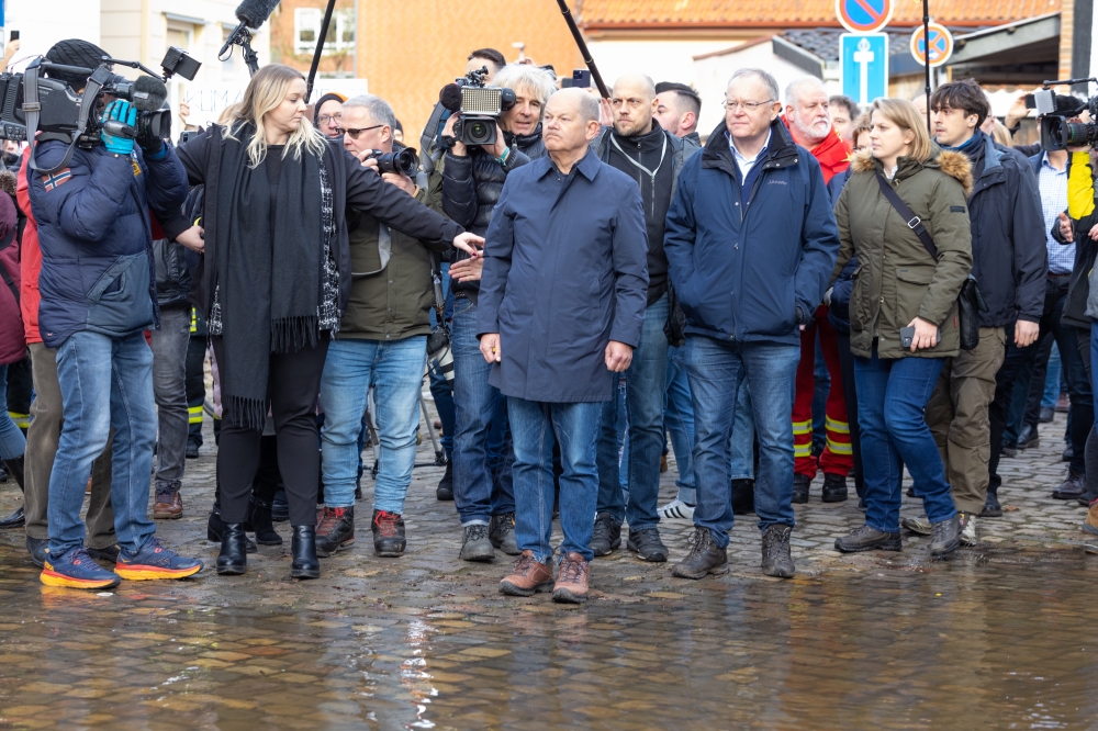 وصل شولتس في الصباح إلى بلدة فيردن في ولاية ساكسونيا السفلى حيث غمرت المياه السدود على طول الأنهار وكانت على وشك الانفجار في بعض أجزاء الولاية.