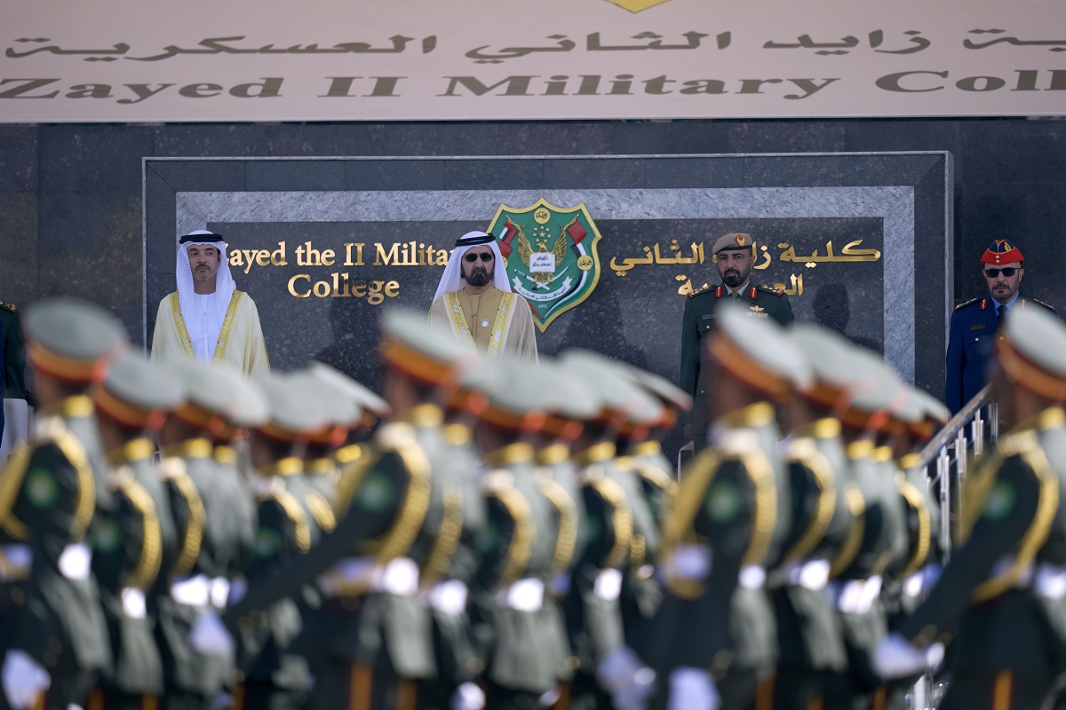 وقد ألقى العميد الركن عبدالله محمد الظاهري، قائد الكلية كلمة استهلها بالترحيب بصاحب السموّ الشيخ محمد بن راشد آل مكتوم والحضور، وقال فيها إن الاتحاد يحتاج إلى قوةٍ تحميه وتصون مكتسباته بإعداد جيل من الضباط القادرين على حماية الوطن والذود عن أراضيه ومقدساته، مشيراً إلى أن الاستراتيجية الواضحة، وعزم الرجال المخلصين كانا وراء تحوّل كلية زايد الثاني العسكرية إلى رافد من روافد عزة الوطن ومنَعَته، منوهاً بالدعم المستمر الذي توليه القيادة الرشيدة لتطوير وتأهيل الكوادر الوطنية في القوات المسلحة.
