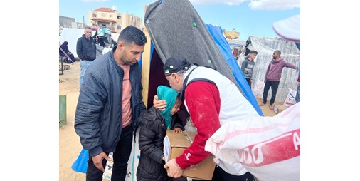 قام وفد جمعية الهلال الأحمر الكويتية أمس بتوزيع مئات الطرود الغذائية على مئات النازحين الفلسطينيين في مدينة رفح جنوب قطاع غزة بمناسبة قرب حلول شهر رمضان المبارك.