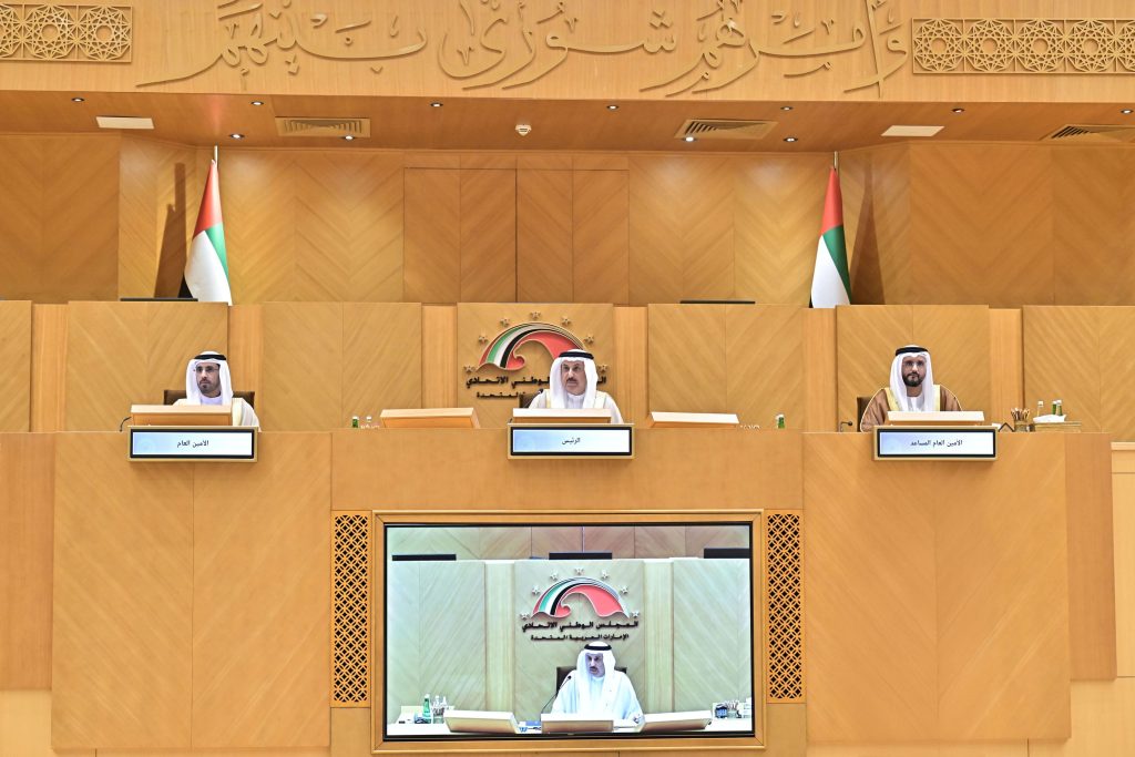 وأربع رسائل تضمنت قرارات مجلس الوزراء بشأن طلب المجلس مناقشة موضوع سياسة الحكومة في شأن التوطين في القطاع الحكومي وشبه الحكومي، وبشأن توصيات المجلس الوطني الاتحادي التي تبناها خلال مناقشة موضوعات سياسة الحكومة بشأن رفع كفاءة العاملين في القطاع الحكومي، وسياسة الحكومة في تعزيز دور الإعلام الحكومي لتأصيل المحتوى وترسيخ الهوية الوطنية، وسياسة الحكومة في إدارة واستدامة الوقف وأموال الزكاة وتعزيز دورها المجتمعي.