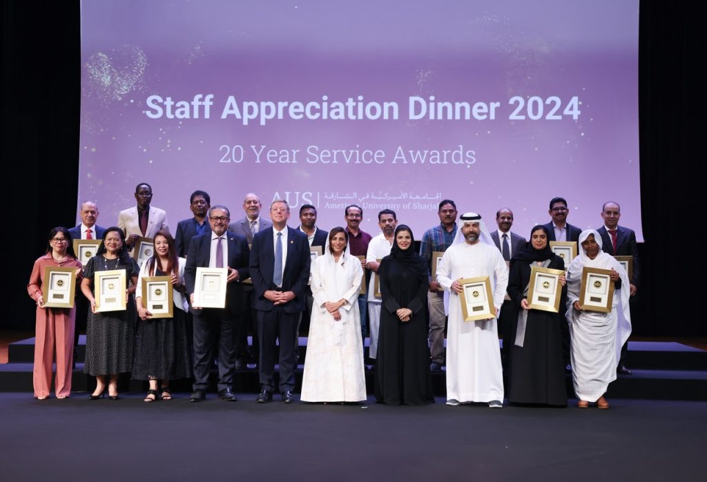 كرّمت الشيخة بدور بنت سلطان القاسمي، رئيسة الجامعة الأميركية في الشارقة، موظفي الجامعة الذين قضوا سنوات خدمة طويلة، احتفاءً بتفانيهم والتزامهم بخدمة الجامعة ودعم رسالتها خلال السنوات الماضية، حيث كرمت الشيخة بدور 98 عضوًا من الهيئة الإدارية في الجامعة خلال حفل عشاء الموظفين السنوي الذي أقيم في حرم الجامعة بحضور 500 من هيئتها الإدارية. وشمل التكريم 16 موظفًا وموظفة من الجامعة ممن قضوا 25 عامًا من العمل في الجامعة و62 موظفًا وموظفة ممن عملوا في الجامعة لأكثر من 20 عامًا، و20 آخرين أكملوا 15 عامًا من الخدمة هذا العام.