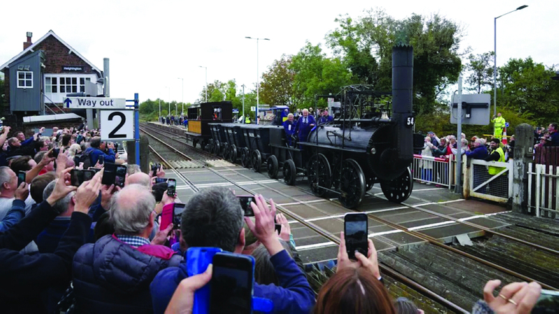 واصطف آلاف الأشخاص على طول الطريق أمس، حيث تعيد نسخة طبق الأصل، تم ترميمها حديثاً من قطار «لوكوموشن رقم1» تمثيل الرحلة الأصلية احتفالاً بالذكرى المئوية الثانية على أجزاء من خط سكة حديد ستوكتون.