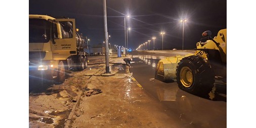 وأوضحت البلدية في بيان ان فرق إدارات النظافة وإشغالات الطرق بكافة المحافظات تشارك في إسناد وزارة الأشغال العامة والجهات المعنية في التعامل مع تجمعات المياه للقيام بسحبها على مدار الساعة لفتح الطرق لتسهيل حركة المرور في الشوارع والطرق الرئيسية اثر موجة الأمطار الحالية.