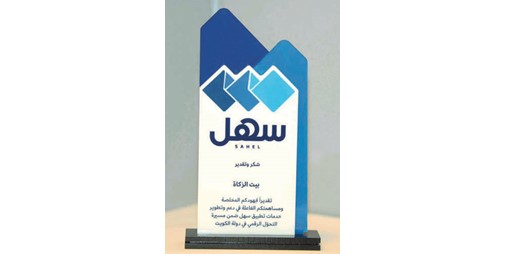 وفي ختام الملتقى، تم تكريم بيت الزكاة تقديرا لمساهمته الفعالة في «سهل» ولجهوده في دعم التحول الرقمي للخدمات الخيرية في الكويت ويأتي هذا التكريم تتويجا للجهود التي يبذلها مركز نظم المعلومات في بيت الزكاة.