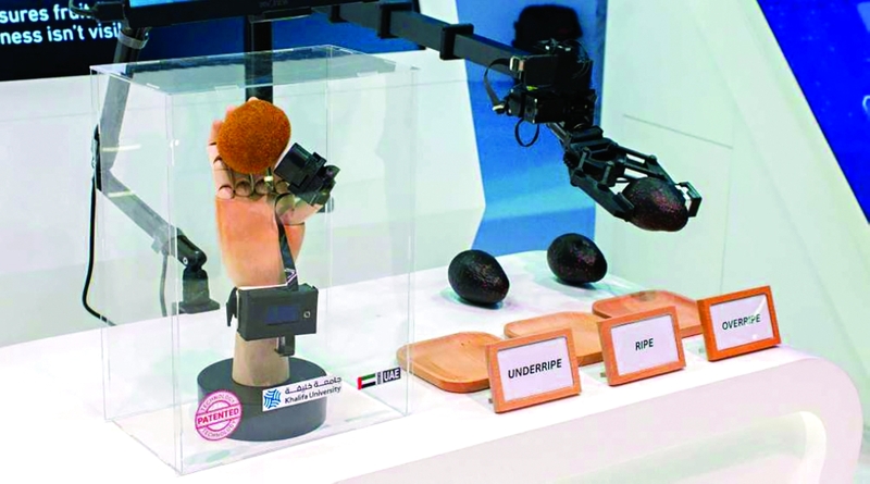 كشفت جامعة خليفة للعلوم والتكنولوجيا عن ابتكار جديد لقياس نضج الفاكهة بالذكاء الاصطناعي «تاتش رايب»، والذي يُعد أول جهاز استشعار محمول للتحقّق من نضج الفاكهة في دولة الإمارات، ويعتمد على اللمس بالإبهام، وقد قدمت الجامعة طلباً للحصول على براءة اختراع أميركية للجهاز. وتفصيلاً، طوَّر باحثون في جامعة خليفة جهاز «تاتش رايب»، الذي يزن 135 غراماً فقط، ليعمل دون حاجة إلى اتصال بالإنترنت، ما يجعله مثالياً للاستخدام الميداني، حيث يُثبَّت الجهاز على الإبهام ويرتبط بالمعصم، ويُقدِّر صلابة الفاكهة خلال أقل من 30 ثانية باستخدام مستشعر لمسي يعتمد على الرؤية وذكاء اصطناعي مدمج، كما يُحاكي الجهاز حاسة اللمس لدى الإنسان، ما يمكِّن المزارعين والمفتشين وشركات القطاع الزراعي من تقييم نضج الفاكهة دون إتلافها، ما يساعد على تقليل الهدر وتعزيز إمكانية تقدير موعد الحصاد وضوابط الجودة عبر سلسلة الإمداد الغذائيّة بأكملها.