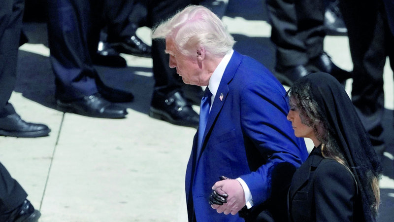 وكان ترامب، البالغ من العمر 78 عاماً، جالساً في الصف الأمامي إلى جانب السيدة الأولى ميلانيا ترامب، خلال مراسم الدفن، وبعد بدء المراسم بقليل تداول مستخدمو مواقع التواصل الاجتماعي صوراً تُشير إلى أن ترامب قد غفا، حيث ظهر مغمض العينين.