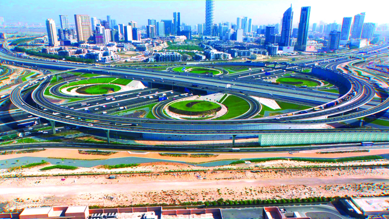 وأضاف الطاير: «نظراً إلى ضخامة المشروع، الذي يتضمن تطوير خمسة تقاطعات، جرى تقسيمه لمرحلتين، سيكون في التقاطع الأول جسر على تقاطع شارع الخيل مع شارع الشيخ محمد بن زايد، بسعة مسارين، بطول 1255 متراً، وبطاقة استيعابية تبلغ 3200 مركبة في الساعة، لحركة الالتفاف إلى اليسار، للحركة المرورية القادمة من ديرة على شارع الشيخ محمد بن زايد إلى شارع الفي باتجاه شارع الإمارات، وزيادة عدد مسارات طرق الخدمة في الاتجاهين لزيادة الطاقة الاستيعابية، وتحسين مستوى الخدمة المروري للتقاطع، كما يشمل تنفيذ جسرين بسعة مسارين في كل اتجاه، بطول 2040 متراً، وبطاقة استيعابية تقدّر بنحو 6400 مركبة في الساعة في الاتجاهين، ويخدم الجسر الحركة المرورية المباشرة من وإلى قرية جميرا الدائرية، وربطها بشارع الشيخ محمد بن زايد.