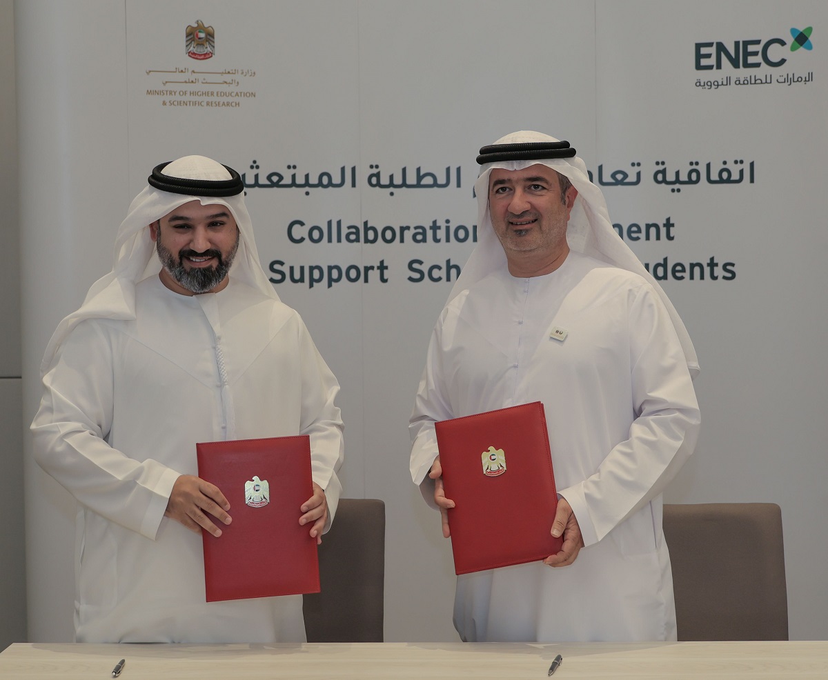 أعلنت وزارة التعليم العالي والبحث العلمي عن اتفاقية تعاون مع شركة الإمارات للطاقة النووية، بهدف دعم برنامج الابتعاث الوطني وتوفير فرص تعليمية وتدريبية نوعية وعالية الجودة للطلبة الإماراتيين في التخصصات الهندسية ذات الصلة بالأولويات الوطنية، وتسهيل التحاق الطلبة بسوق العمل فور تخرجهم.