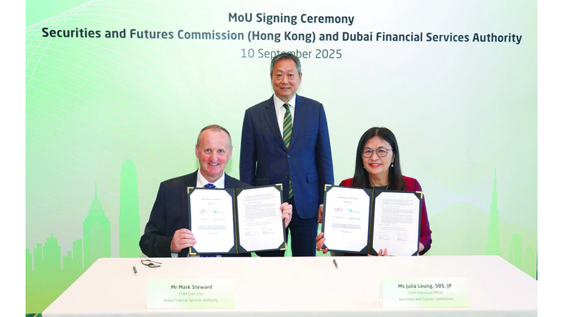 وقال ستيوارد، إن «مذكرة التفاهم الموقعة بين سلطة دبي للخدمات المالية وهيئة الأوراق المالية والعقود الآجلة، سيكون من شأنها تمكين الشركات من العمل في أسواق كلتا الجهتين بثبات ونزاهة، وهي تُجسد حرصنا المشترك على تحقيق أعلى مستويات التميز التنظيمي والابتكار في الأنشطة عبر الحدود». وأضاف: «بتعاوننا هذا نطمح إلى تعزيز الإطار التنظيمي للاستثمار العالمي وتدفق رأس المال بين دبي وهونغ كونغ».