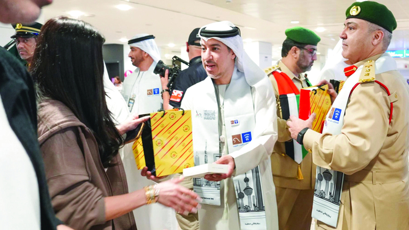 وشهدت الفعالية تخصيص كاونتر خدمة خاص يحمل شعار «للكويت وأهلها.. هذا كاونتركم، وهذي داركم، نورتوا الإمارات»، إضافة إلى توزيع الهدايا التذكارية وإضاءة البوابات الذكية باللون الأزرق، ما أضفى لمسة احتفالية زادت من بهجة المناسبة، وشاركت الشخصيتان الأيقونيتان (سالم) و(سلامة) في استقبال الأطفال والترحيب بهم، ليضفوا على الحدث أجواء عائلية دافئة، كما تم ختم جوازات المسافرين القادمين من الكويت بختم خاص يحمل شعار «#الإمارات_تحب_الكويت»، تعبيراً عن عمق العلاقات الأخوية بين البلدين.