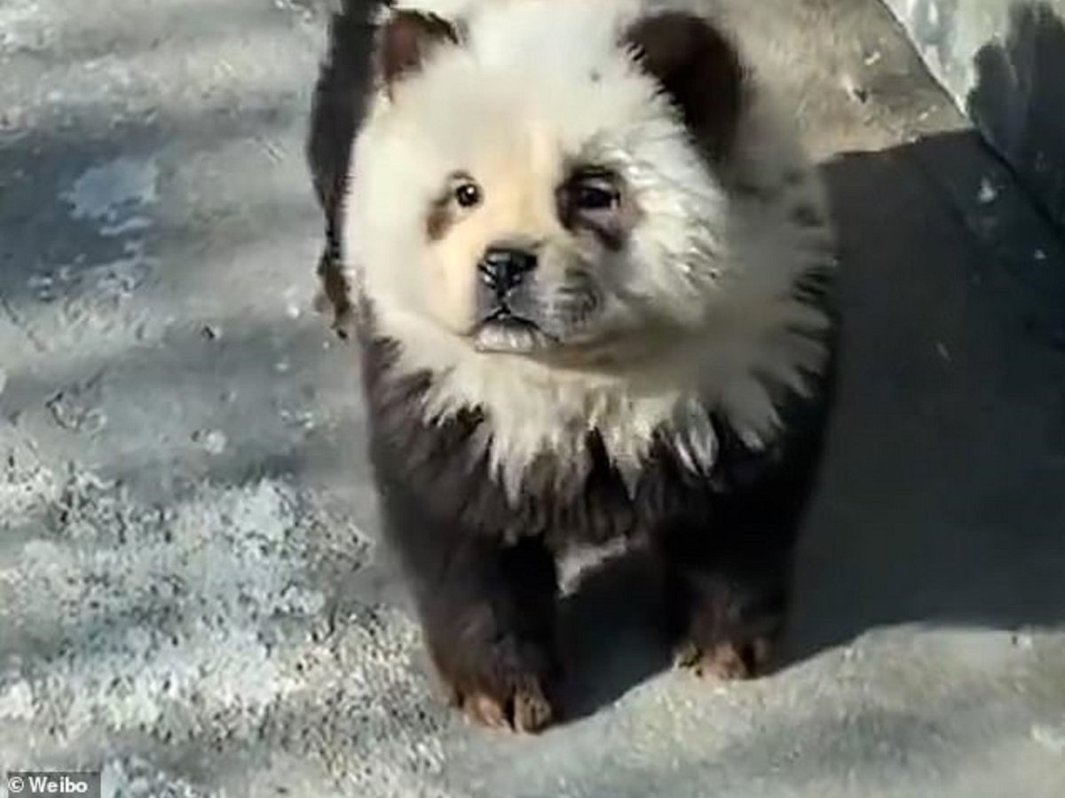 وأظهر مقطع فيديو، صوّره أحد الزوار، أحد الكلاب المتنكرة بشكل غير خفي، وهو يلهث بوضوح. وبعد لحظات يمكن رؤية كلب ثانٍ يتجول بذيل طويل. وحاولت إدارة حديقة الحيوان في البداية تبرير الموقف من خلال ادعاء غريب بأن الحيوانات كانت سلالة من «كلاب الباندا، لكنها اعترفت لاحقاً بأنها صبغت الكلبين».