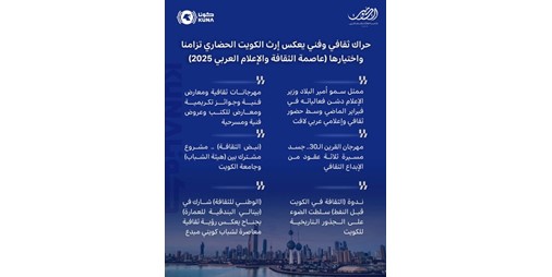 واختارت المنظمة العربية للتربية والثقافة والعلوم (ألكسو) ومجلس وزراء الإعلام العرب الكويت عاصمة للثقافة العربية والإعلام العربي 2025 اعترافا بمكانتها الريادية ودعمها اللامحدود للثقافة والإعلام بكافة أشكالهما.