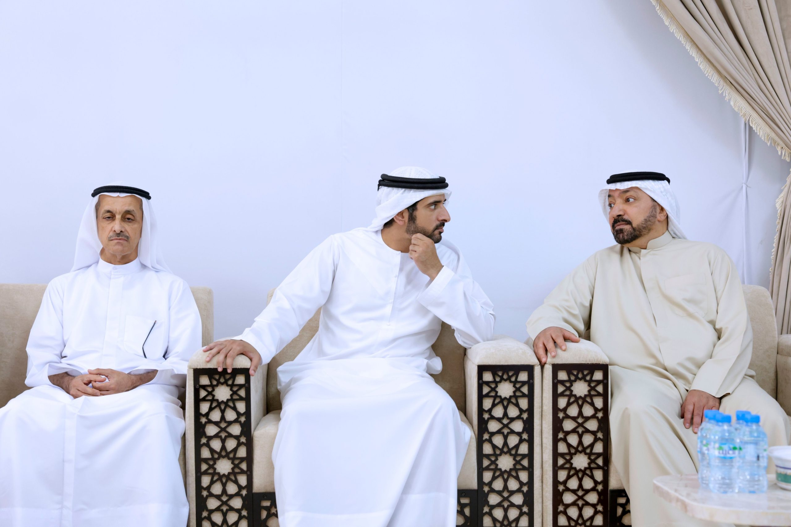 حمدان بن محمد يقدم واجب العزاء في وفاة موزه بنت عبيد بن راشد المرّي