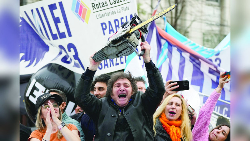 من المتوقع أن يستخدم الرئيس الأرجنتيني المنتخب، خافيير مايلي، خطاب تنصيبه لكبح التوقعات والتحذير من أن البلاد تواجه أوقاتاً عصيبة قبل أن تتحسن الأمور. لقد حقق الليبرالي الذي يصف نفسه بـ«الرأسمالي الفوضوي»، والذي دخل مجال السياسة قبل عامين فقط، الفوز في انتخابات الشهر الماضي، بعد حملة وعدت بإلغاء البنك المركزي، من بين أمور أخرى. وأكد هذا العزم في مسيرات بجميع أنحاء البلاد، من خلال التلويح بالمنشار فوق رأسه، والاحتجاج على ما يسميه «الطبقة السياسية».