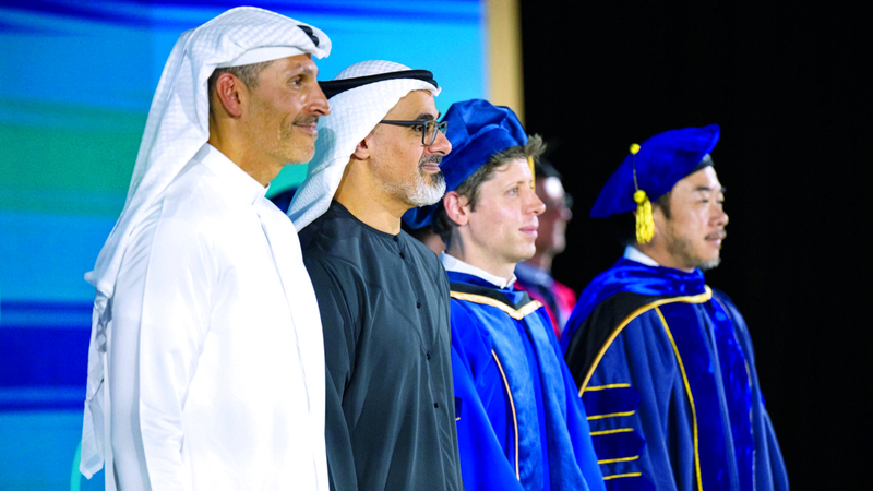 شهد سموّ الشيخ خالد بن محمد بن زايد آل نهيان، ولي عهد أبوظبي رئيس المجلس التنفيذي لإمارة أبوظبي، مراسم حفل منح الدكتوراه الفخرية الأولى في جامعة محمد بن زايد للذكاء الاصطناعي إلى الرئيس التنفيذي لشركة «أوبن إيه آي» سام ألتمان، تقديراً لقيادته التحويلية في مجال الذكاء الاصطناعي.