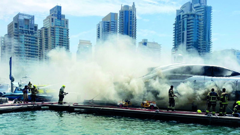 سيطر الدفاع المدني في دبي على حريق شبَّ في يخت بمنطقة «المارينا»، أمس، بحسب المتحدث عن الإدارة العامة للدفاع المدني، الذي أشار إلى أن الحادث لم يسفر عن وقوع إصابات. وقال المتحدث لـ«الإمارات اليوم»، إن بلاغاً ورد إلى غرفة عمليات الدفاع المدني في الساعة 11 و12 دقيقة صباح أمس، عن حريق في قارب بمنطقة «المارينا»، فتحركت فرقة من مركز «دبي هاربر» كمستجيب أول بجهة الاختصاص، ووصلت إلى الموقع خلال ست دقائق، وتم اتخاذ الإجراءات اللازمة.