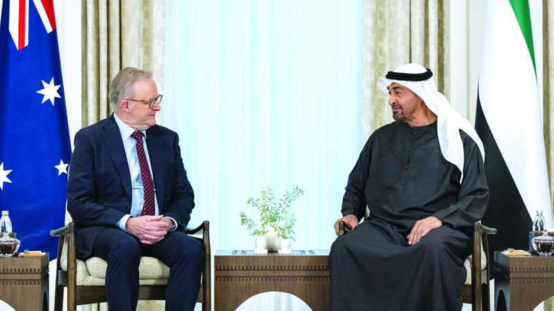 ورحّب صاحب السمو رئيس الدولة، خلال اللقاء الذي جرى، أمس، بقصر الشاطئ في أبوظبي، برئيس الوزراء الأسترالي، مؤكداً متانة العلاقات الإماراتية – الأسترالية وتطورها على مدى العقود الماضية، خصوصاً في مجالات اقتصاد المستقبل والاستثمار والطاقة المتجددة والاستدامة والتعليم، وغيرها من القطاعات التي تمثل أولويات تنموية للبلدين.