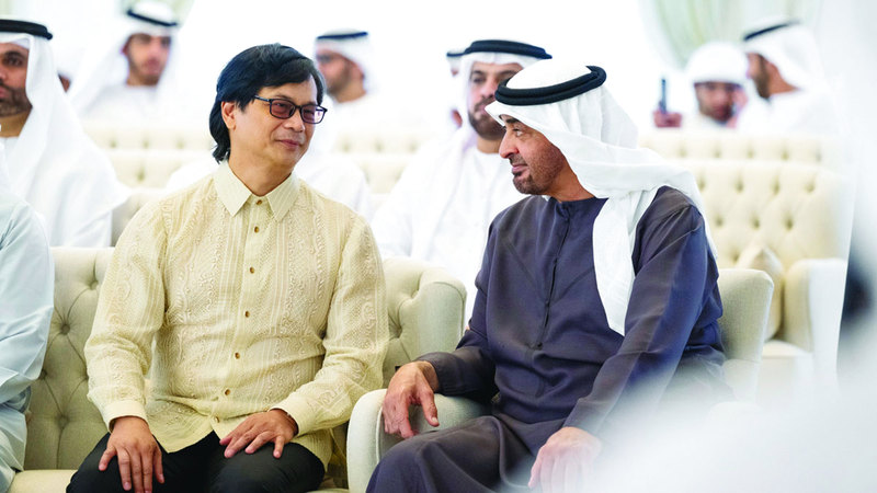 ونقل الوزير إلى سموه، خلال اللقاء الذي جرى في قصر البحر في أبوظبي، تحيات رئيس جمهورية الفلبين، فرديناند ماركوس جونيور، وتمنياته لدولة الإمارات دوام الازدهار، وللعلاقات الإماراتية ـ الفلبينية مزيداً من التقدم، فيما حمّله سموه تحياته إلى الرئيس الفلبيني، وتمنياته لبلده وشعبه الصديق مزيداً من النماء.