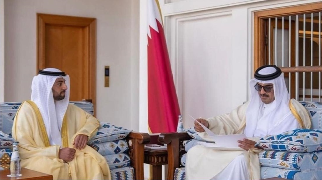 سلم الرسالة إلى سموه، سعادة الشيخ زايد بن خليفة آل نهيان سفير الدولة لدى دولة قطر الشقيقة، خلال استقباله في الديوان الأميري.