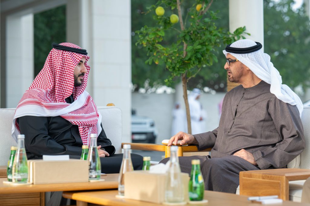 وبحث صاحب السمو الشيخ محمد بن زايد آل نهيان وصاحب السمو الملكي الأمير خالد بن سلمان .. العلاقات الأخوية الراسخة بين البلدين ومسارات تعاونهما في جميع المجالات بما يدعم مصالحهما المشتركة ويحقق تطلعات شعبيهما نحو التنمية والازدهار.