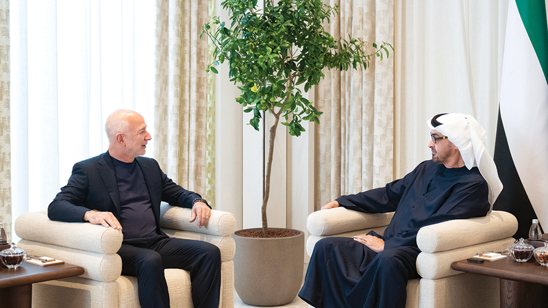استقبل صاحب السمو الشيخ محمد بن زايد آل نهيان، رئيس الدولة، حفظه الله، مؤسس ورئيس مجلس الإدارة التنفيذي لشركة «أمازون»، جيف بيزوس.
