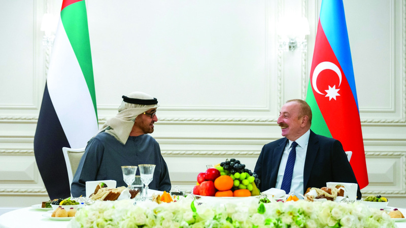 وحضر صاحب السموّ الشيخ محمد بن زايد آل نهيان، أمس، مأدبة العشاء التي أقامها الرئيس إلهام علييف، تكريماً لسموّه والوفد المرافق، وذلك في إطار الزيارة الرسمية التي يقوم بها سموّه إلى أذربيجان. كما حضر المأدبة الوفد المرافق لسموّه خلال الزيارة وعدد من الوزراء وكبار المسؤولين في أذربيجان.