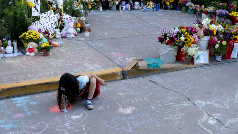 شاركها فيسبوك تويتر لينكدإن بينتيريست تيلقرام البريد الإلكتروني طفلة تكتب رسالة على الأرض باستخدام طباشير خارج كنيسة «البشارة»، في أعقاب إطلاق نار وقع أخيراً بمدرسة الكنيسة في مدينة مينيابوليس بولاية مينيسوتا بالولايات المتحدة الأميركية، وأدى إلى مقتل طفلين في 30 أغسطس الماضي.