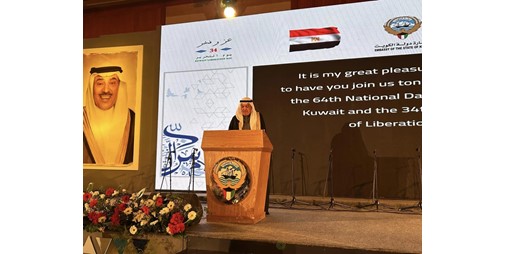وأعرب عن شكره وتقديره الى الجالية المصرية المقيمة في دولة الكويت التي تشارك بجانب أشقائهم في دولة الكويت في عملية التنمية وكذلك الشكر لمصر بجميع مؤسساتها على الرعاية المقدمة لأبنائنا الكويتيين في القاهرة من طلبة علم وغيرهم من قاصدي السياحية أو ممن يعملون في قطاع الاعمال.