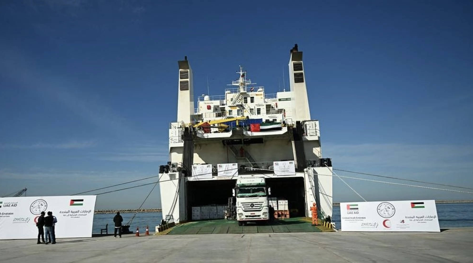 وكانت دولة الإمارات قد سيرت في ديسمبر من العام الماضي، سفينة المساعدات الأولى إلى مدينة العريش ضمن عملية “الفارس الشهم 3” وعلى متنها 4016 طنا من المواد الإغاثية المتنوعة، تضمنت 3465 طنا من المواد الغذائية، و420 طنا من المواد الإيوائية، و131 طنا من المساعدات الطبية، تلتها الباخرة الثانية التي تم تسييرها في فبراير الماضي، وحملت 4 آلاف و303 أطنان من المواد الغذائية و154 طنا من مواد الإيواء، و87 طنا من المساعدات الطبية.