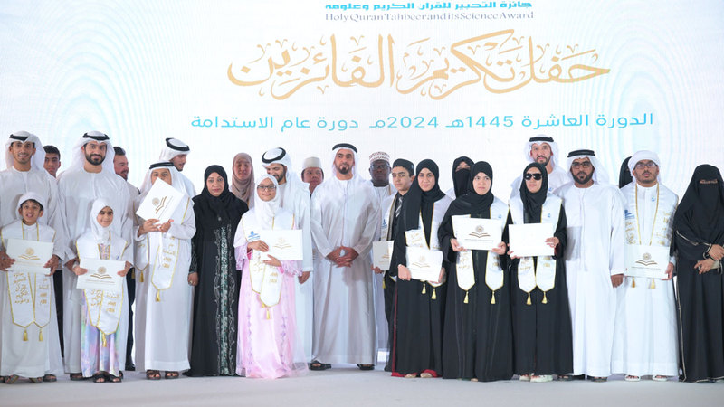كرّم الفريق سمو الشيخ سيف بن زايد آل نهيان، نائب رئيس مجلس الوزراء وزير الداخلية، الفائزين بالدورة العاشرة من جائزة التحبير للقرآن الكريم وعلومه «دورة عام الاستدامة»، كما كرّم سموه الشركاء والداعمين للجائزة، وعدداً من الإعلاميين الذين أسهموا في إنجاح هذه الدورة.