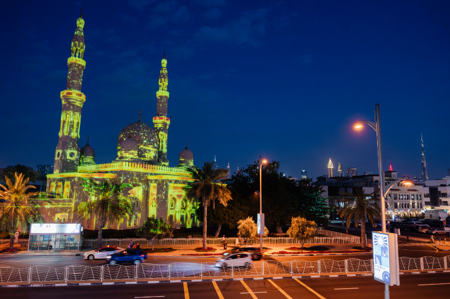واستخدمت في هذه الأشكال الضوئية أحدث التقنيات والتي يتم من خلالها تغطية مبنى المسجد بالكامل بما في ذلك مأذنتيه وقبته، بتصميمات بديعة، تتناغم مع طبيعة المكان والمنطقة المحيطة والتي تستقطب يومياً آلاف الزوار من داخل الدولة وخارجها، كذلك تم استخدام تقنيات مشابهة لتثبيت تشكيلات ضوئية مبهرة على واجهات العديد من المساجد والأبنية الرئيسية في مناطق متفرقة من دبي التي تزداد رونقاً وتألقاً في هذه المناسبة، تأكيداً على نشر مظاهر البهجة بشهر العطاء والبركة.