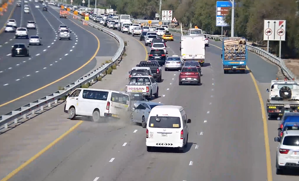 شرطة أبوظبي تناشد السائقين بعدم الانشغال بغير الطريق أثناء توقف حركة السير في الطريق