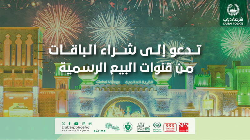 وشددت القيادة العامة لشرطة دبي على ضرورة شراء التذاكر والباقات الخاصة بالقرية العالمية عبر القنوات الرسمية المعتمدة فقط، سواء من خلال الموقع الإلكتروني للقرية أو تطبيقها الذكي أو منافذ البيع المصرح بها، مؤكدة أن هذه هي الطرق الوحيدة الآمنة لضمان حقوق الجمهور.