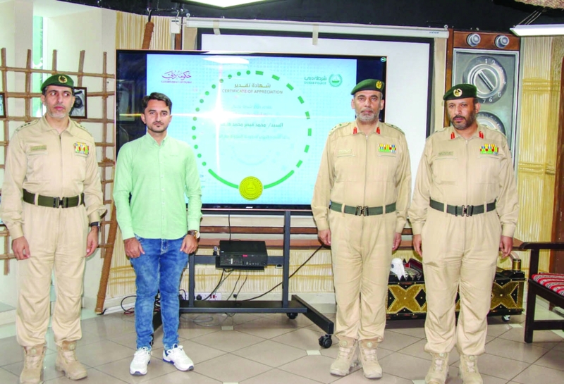 كرّم رئيس قسم الشؤون الإدارية في مركز شرطة بردبي، العقيد عبدالسلام أحمد المهري، المقيم الشاب محمد قيصر محمد حنيف، تقديراً لتعاونه وحسن تصرفه، الأمر الذي أسهم في تعزيز الأمن والأمان في المجتمع.