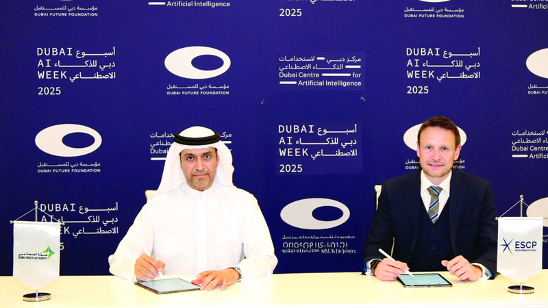 وقعت هيئة الصحة بدبي، خلال مشاركتها في فعاليات «أسبوع دبي للذكاء الاصطناعي» مذكرة تفاهم مع الكلية العليا لإدارة الأعمال في باريس (ESCP) إحدى أعرق كليات إدارة الأعمال في العالم، بهدف تصميم وتنفيذ برنامج تدريبي متخصص للقيادات الصحية في الهيئة يركز على التطبيقات الاستراتيجية للذكاء الاصطناعي.