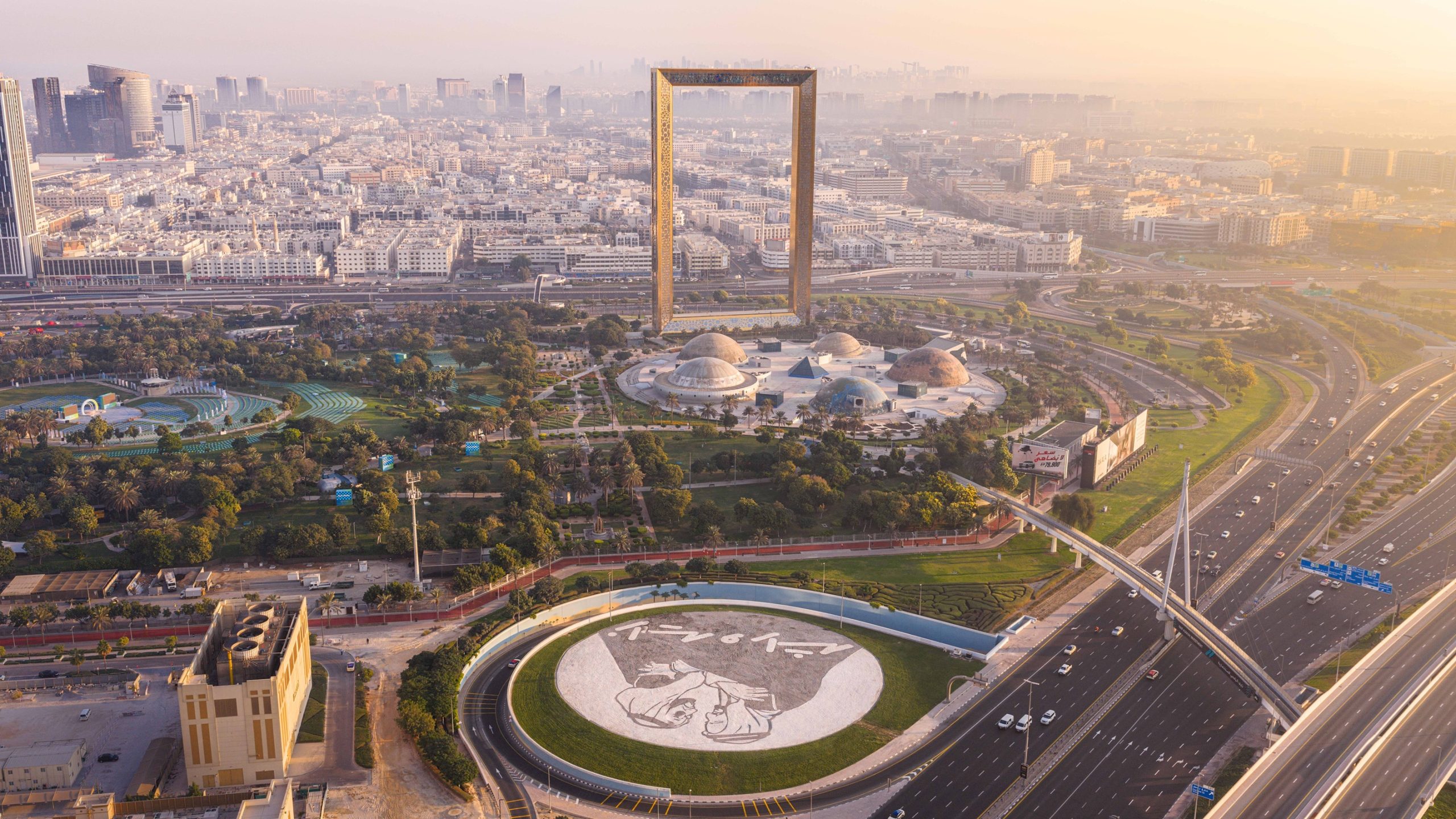 وقد تم تنفيذ العمل الفني الذي يحمل صورة الشيخ زايد والشيخ راشد، رحمهما الله تعالى، على مجسم أرضي ضخم قطره 82 متراً أمام مبنى “البرواز” في إضافة إبداعية تحمل معاني ورسائل وطنية مهمة ضمن رؤية شاملة تحتفي بتاريخ الإمارات وتستشرف مستقبلها المزدهر.