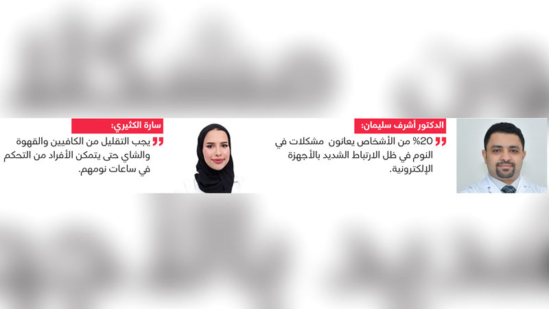 ولفت إلى أن 20% من الأشخاص يعانون مشاكل في النوم خصوصاً في ظل الارتباط الشديد بالأجهزة الإلكترونية بأنواعها، فالنوم عنصر مهم للإنسان ولنضارة البشرة وفقدان الوزن عبر التمثيل الغذائي وراحة الجسم وتقوية الأعصاب وتجنب حالات الصداع، حيث يحتاج 95% من الأشخاص في العالم إلى نحو من سبع إلى تسع ساعات من النوم في حين أن 2.5% من الأشخاص ينامون أقل، ومن الضروري الحفاظ على ساعات النوم لدى الأطفال، لتحسين أدائهم المدرسي والحياة بطريقة طبيعية.