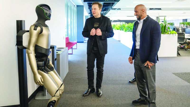 وفي جولة اصطحب فيها إيلون ماسك عبدالله آل حامد، داخل مختبر روبوتات «أوبتيموس»، شهد خلالها عروضاً حيّة لقدرات الروبوتات في المحاكاة الحركية والتفاعل الذكي، واستمع إلى شرح مفصل حول خطط تطويرها لتصبح جزءاً من منظومة الحلول المستقبلية في قطاعات الصناعة والخدمات.
