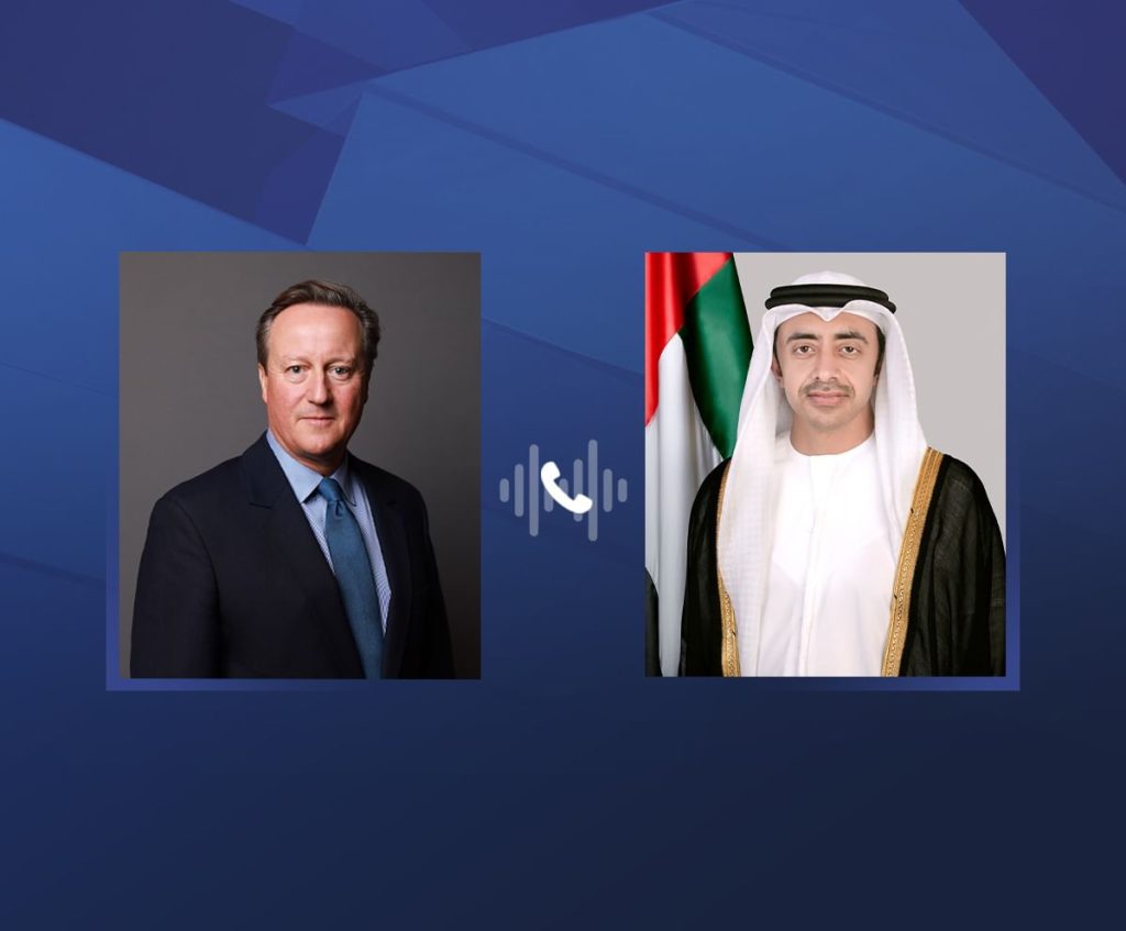 بحث سمو الشيخ عبدالله بن زايد آل نهيان وزير الخارجية خلال اتصال هاتفي مع معالي ديفيد كاميرون وزير خارجية بريطانيا التطورات الخطيرة الراهنة في المنطقة وتداعياتها على السلم والأمن الإقليمي والدولي.