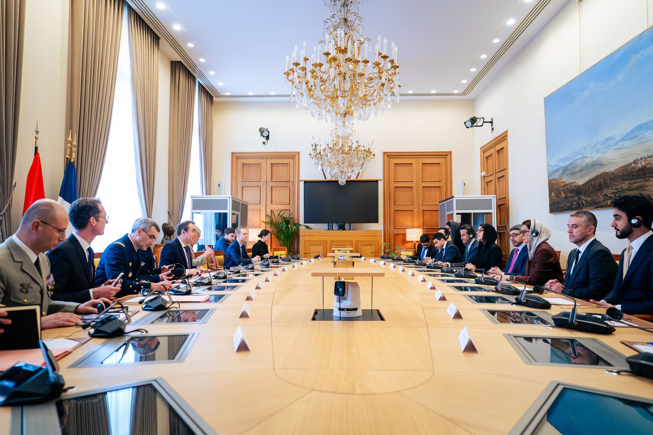 عقب ذلك، عقد سموه اجتماعا مشتركا مع سيباستيان ليكورنو، جرى خلاله بحث العلاقات الإستراتيجية بين البلدين والتعاون المشترك في المجالات الدفاعية.