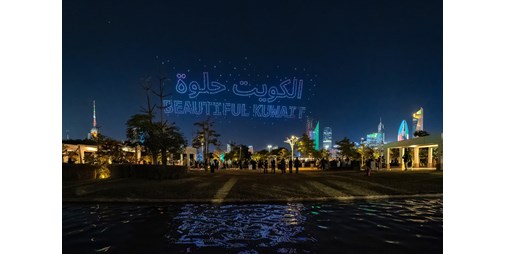 وحلق سرب الدرون على شاطئ الخليج العربي مشكلا لوحة حملت علم دولة الكويت وأخرى تضمنت عبارة “الكويت حلوة”.